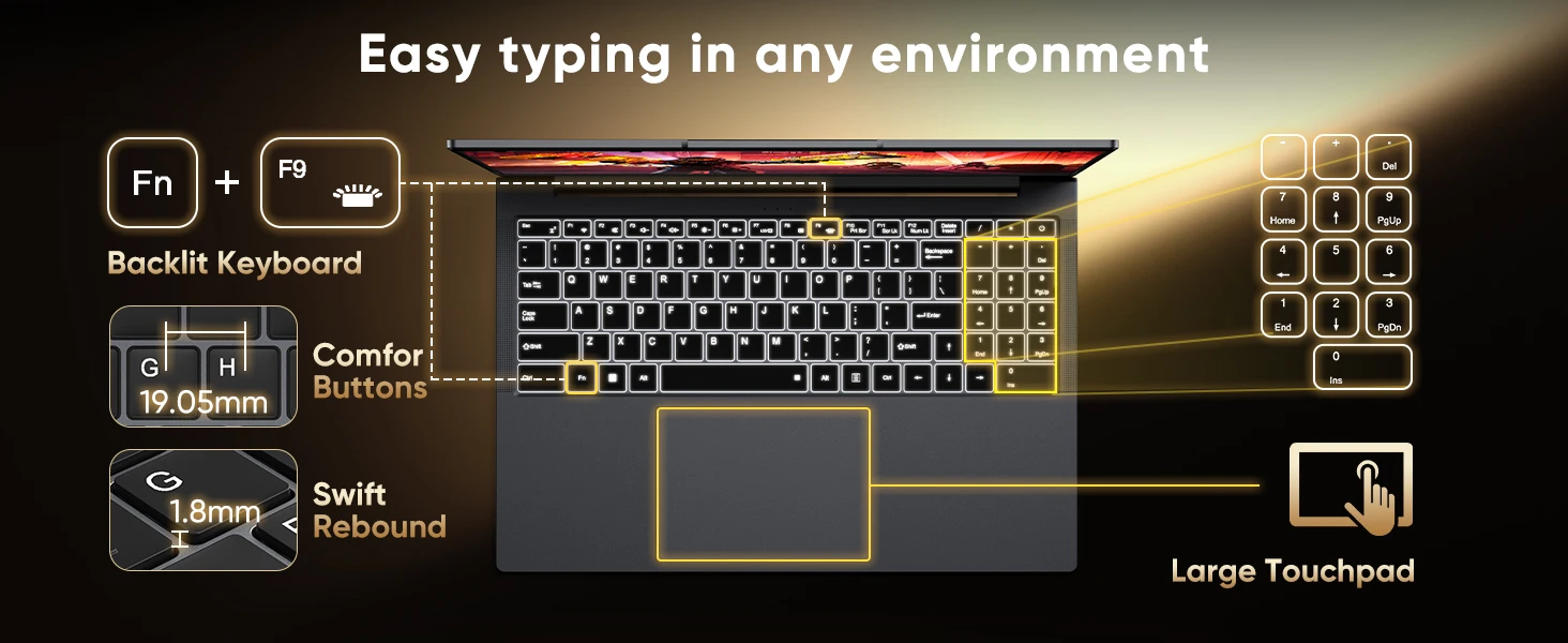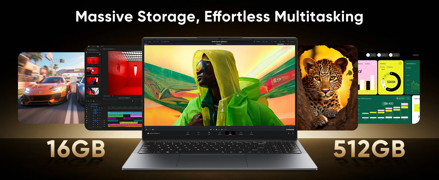 [16GB RAM + 512GB SSD] Laptop Computer uses dual-channel 16GB (8+8) memory, which doubles the data transfer rate and can complete data read and write operations faster when processing large applications and multitasking. In addition, there is a large storage space of 512GB, which provides ample space for your important files, applications and media, ensuring that you get a reliable work experience