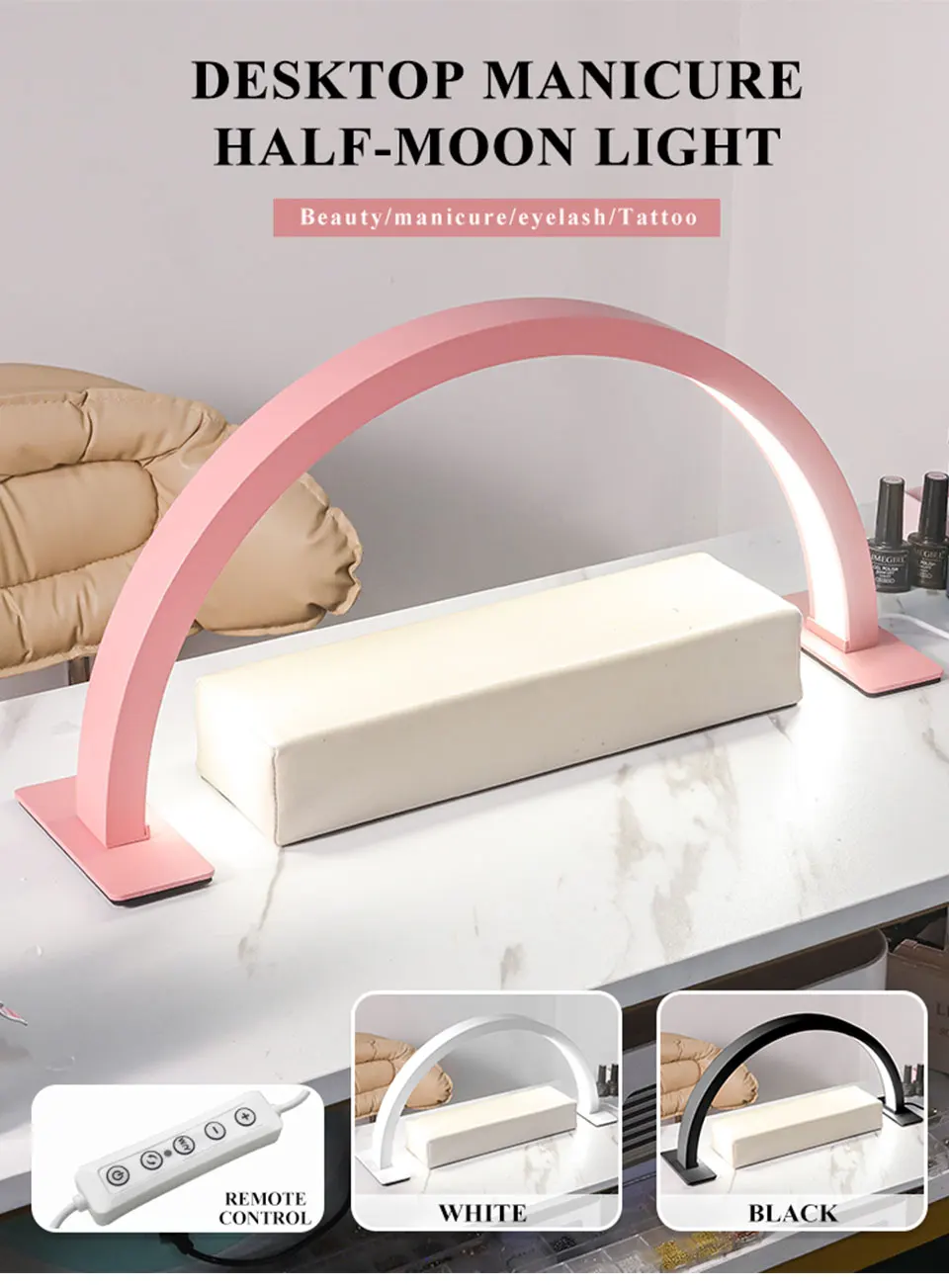 Half-Moon U-Shaped Manicure Table Lamp Shadowless Fill Light Tabletop Beauty Manicure Lighting Lamp Eye Care LED Table Lamp