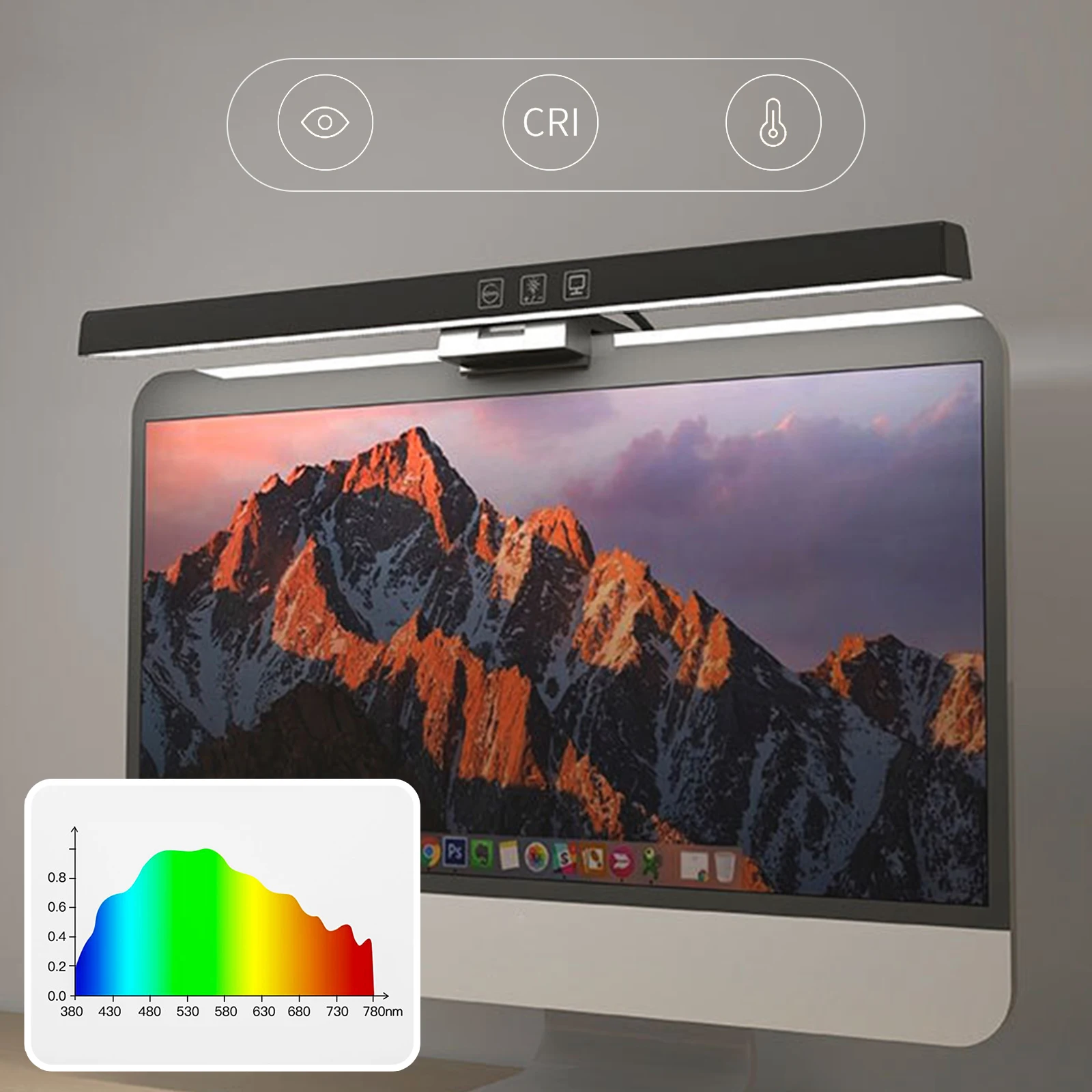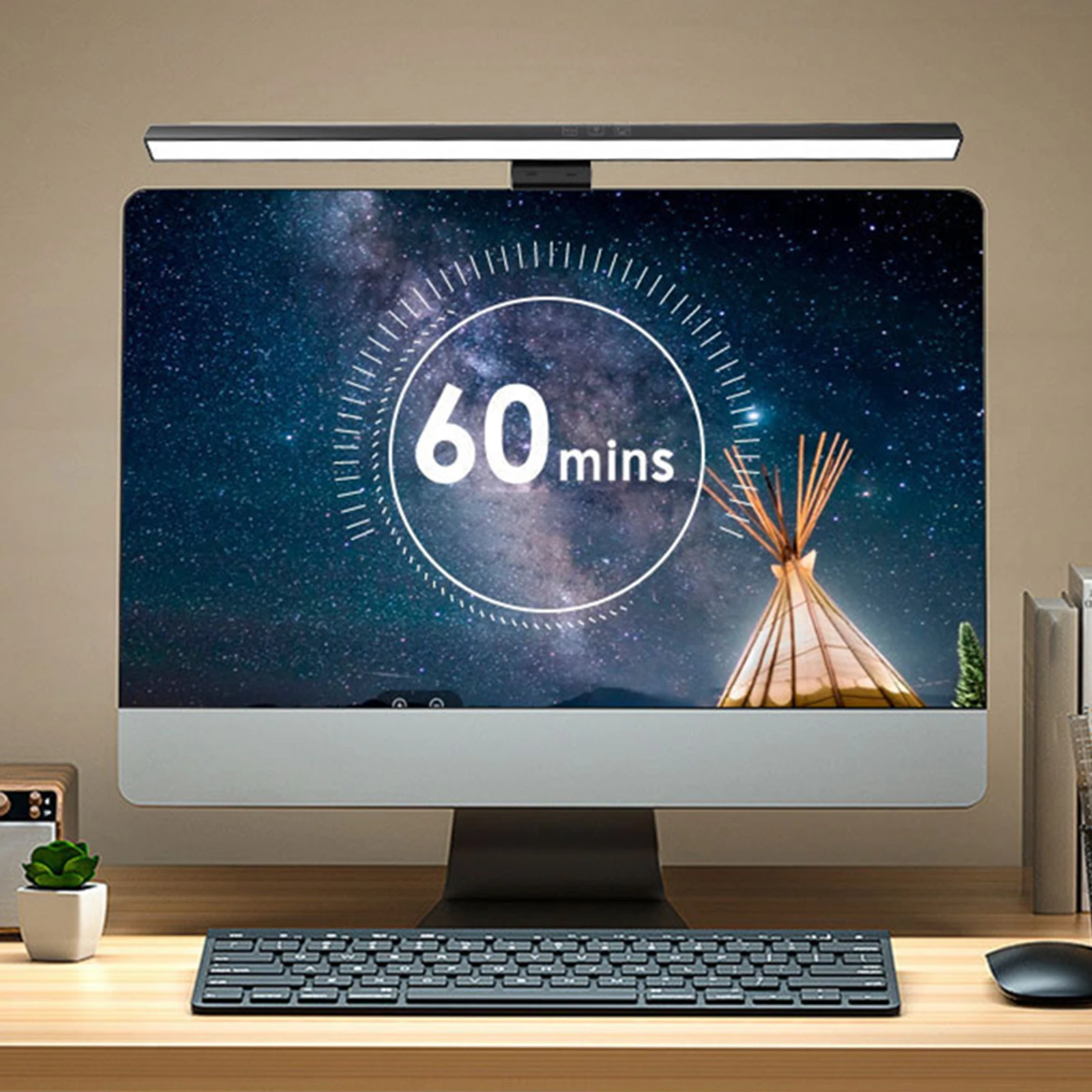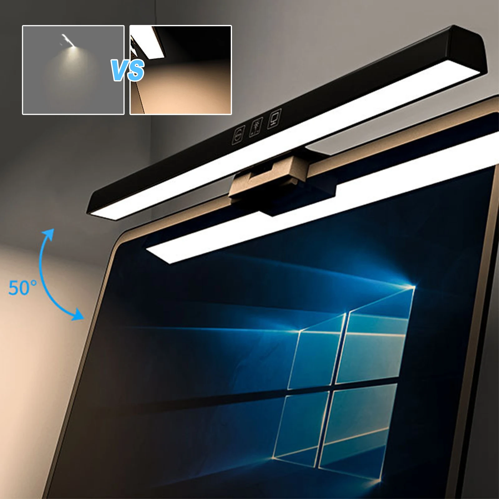 Note: LED Monitor Light Bar Dimmable Computer Monitor Lamp USB Powered Hanging Table Lamp for Desk/Office/Home/Game Features: 1.No Base Design, Save Desktop Space: The monitor light bar uses a hanging design that eliminates the need for a base, freeing up valuable desk space. Effortlessly attaches to your screen and provides a stable hold while keeping your desktop organized. 2.Asymmetric Light Source for Eye Comfort: This computer monitor lamp features directional lighting to avoid screen reflections and glare, reducing eye strain and creating a healthier visual environment for prolonged use. 3.Multiple Dimming Modes for Versatility: Adjust the desk lamp to suit any scenario with three color temperature options from cool to warm and step-less brightness control, accommodating different needs for work, study, or relaxation. 4.Convenient Power Supply Options: Equipped with a Type-C port, the screen light bar can be powered via computer, adapter, or power bank, offering hassle-free and flexible powering solutions for increased convenience. 5.60-Minute Auto-Off Timer for Eye Health: The screenbar includes an automatic shut-off function set at 60 minutes to remind you to rest your eyes, protecting your vision and promoting healthy usage habits. Specification: Origin: Mainland China Product Size: 19.69 x 1.3 x 0.59 inches Product Material: ABS+PC Power Supply: Type-C interface Light Source: LED (2835*78*0.5W/LED) Rated Power: 5W Rated Voltage: 5V/1A Luminous Flux: 201LM Color Temperature: 3000/4000/6500K Timer: 60 minutes Adjustment: Touchscreen stepless dimming Note: Suitable for displays ≤550mm in length. This product is suitable for desktop computer displays ≤22mm thick and ≤10° tilt. Manual adjustment is required.